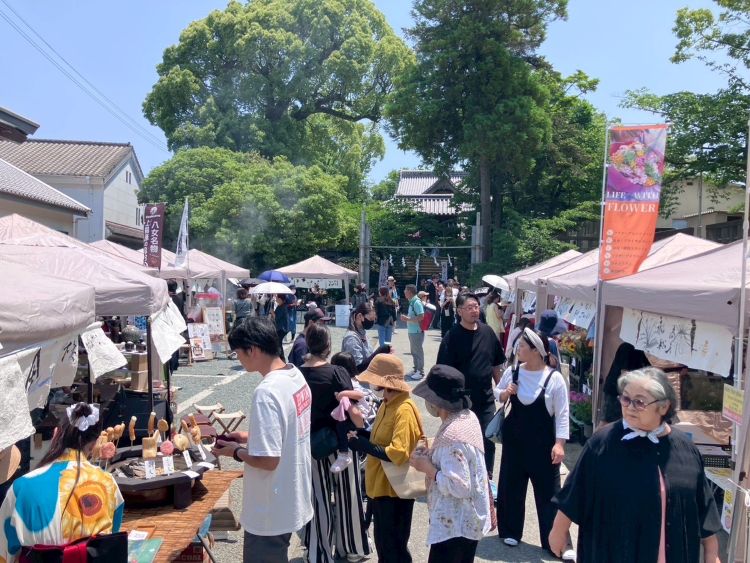 会場には、八女のグルメがずらりと並びます。熱々のだご汁や炭火焼きのスペアリブ、自家製アイスクリームに本格コーヒーなど、八女自慢のグルメが勢ぞろい。各店の軒先には、八女が誇る伝統工芸「八女和紙」で作られたのれんがかかり、来る人の目を楽しませてくれます。