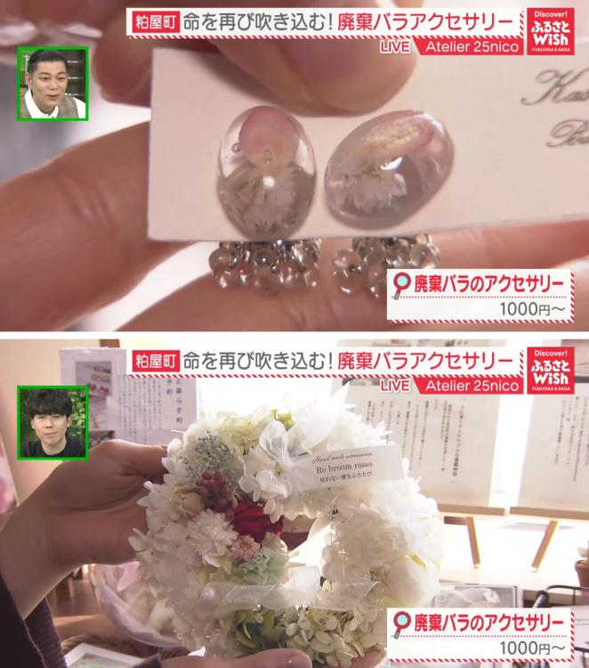 再生されたバラから生まれるのは、可憐なアクセサリーの数々。