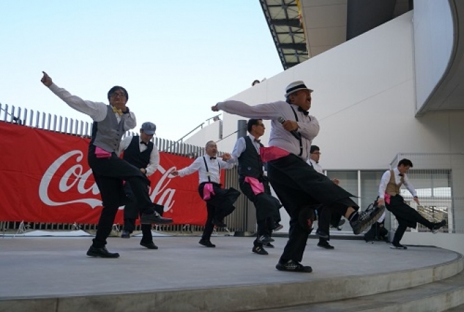 サポーターも巻き込み、みんなで懐かしい音楽と共にダンス!ステージには笑顔が溢れていました!