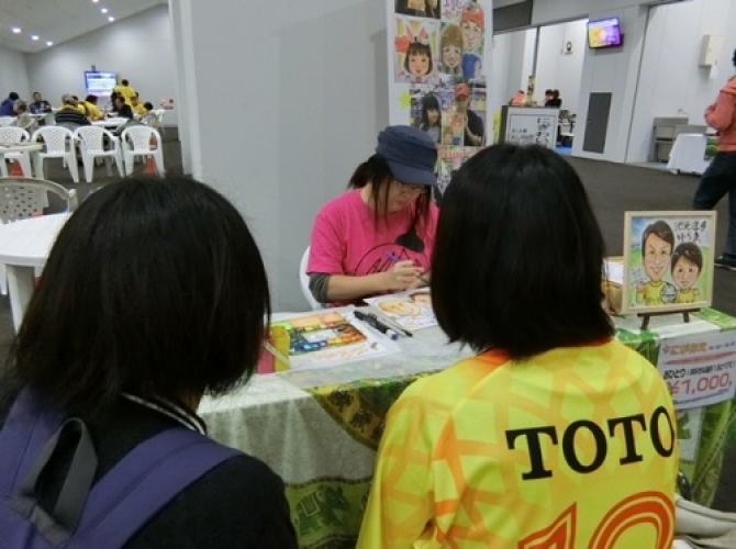似顔絵ブースでは、好きな選手とツーショット似顔絵を描いてくれます!似顔絵師が書いてくれる世界に1つしかない選手との絵は宝物ですね!