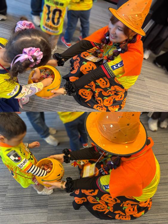 私は、派手魔女になってしまいましたが、トリックオアトリートと言ってくれたので、子どもたちにお菓子を配ってきました!