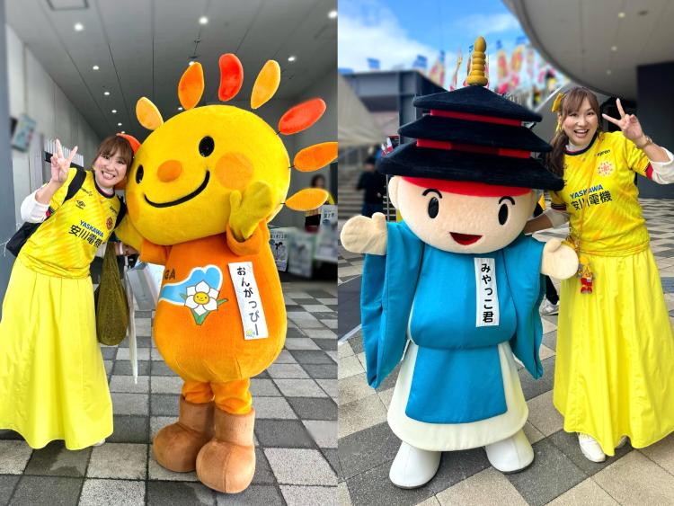 フレンドリータウンのマスコットにも会えましたよ!遠賀町のおんがっぴー。みやこ町のみやっこ君!スタジアムを盛り上げてくれてありがとう!