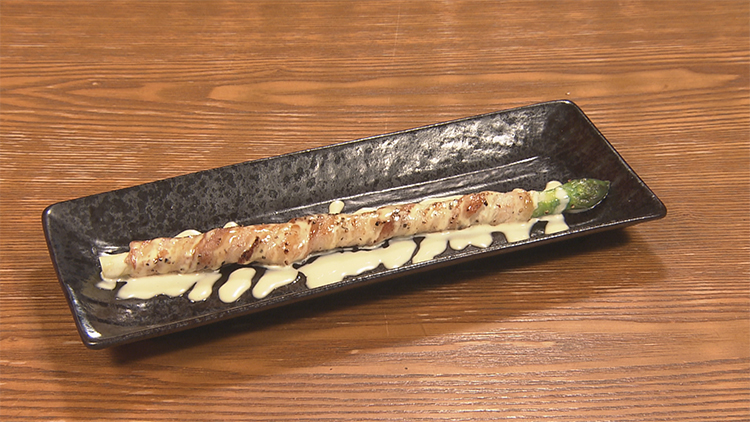 1番人気の1本のアスパラを豚で巻いた料理で自家製マヨネーズをかけた料理は絶品でドリンクも豊富。