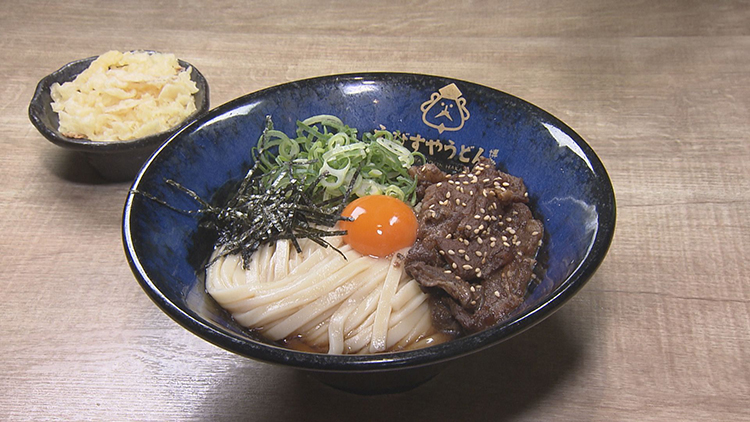 中でもおすすめは「カルビぶっかけうどん」。甘辛く香ばしいカルビに濃厚な卵が絡み、もちもち麺との相性は抜群。天かすの食感や柚子胡椒での味変も楽しめて、最後まで飽きずに味わえる。
