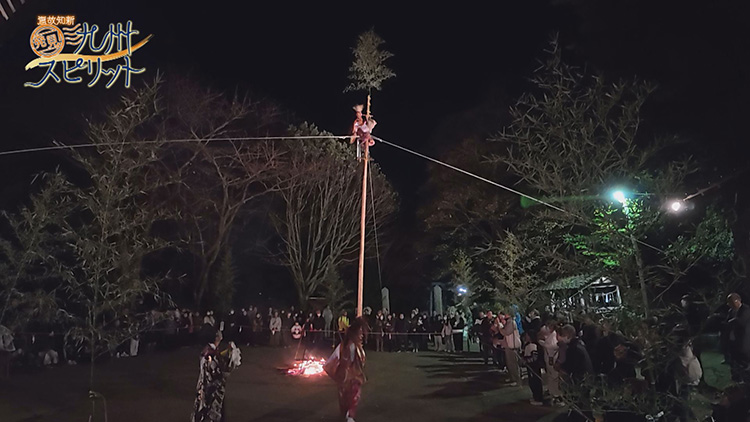 「湯立神楽というのは天と地が交合をしてそのことによって神様に願いを叶えてもらうという意味合いがあると言われています。中央に立てられた高い柱に登ることによって天地の神様に氏子の思いを届けるという意図があるんだと思います。」