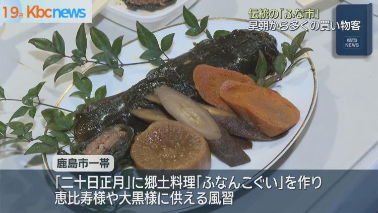 鹿島市一帯には正月の祝い納め行事「二十日正月」にフナを昆布で巻いて煮込んだ郷土料理・「ふなんこぐい」をつくり、恵比須様や大黒様にお供えする風習があります。