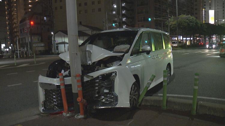 警察によりますと、福岡市中央区春吉の柳橋交差点で20日午後8時半前、「車が電柱にぶつかっている」と、目撃した女性から110番通報がありました。