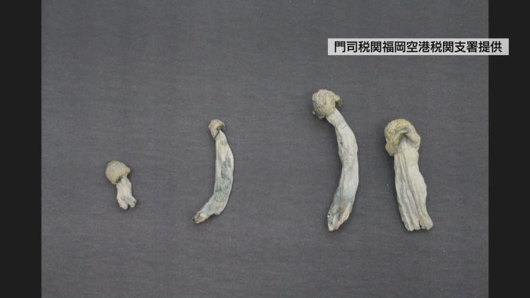 門司税関によりますと税関検査の際、ショルダーバッグの中にあったミックスナッツの袋の中からマジックマッシュルーム5片が見つかったということです。