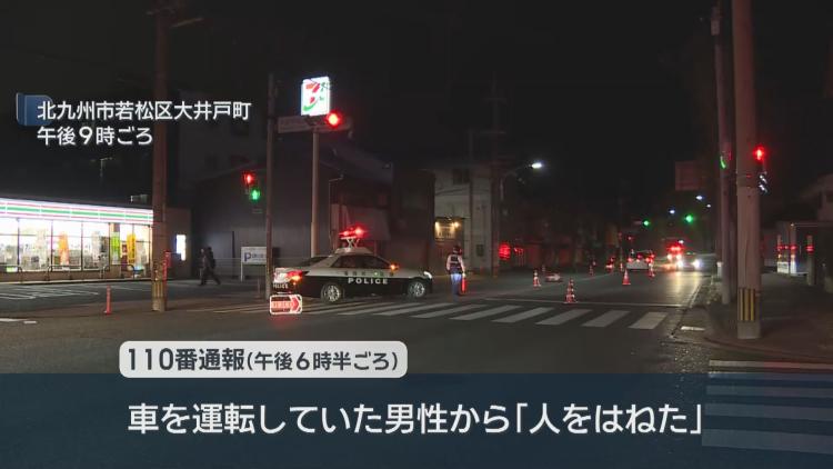 警察によりますと、3日午後6時半ごろ、北九州市若松区の大井戸町西交差点で、普通乗用車を運転していた男性から「人をはねた」と110番通報がありました。
