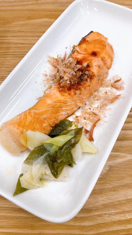 今日はレシピの中から「鮭と長ネギの酒蒸し しょうゆとおかか」を試食しました!