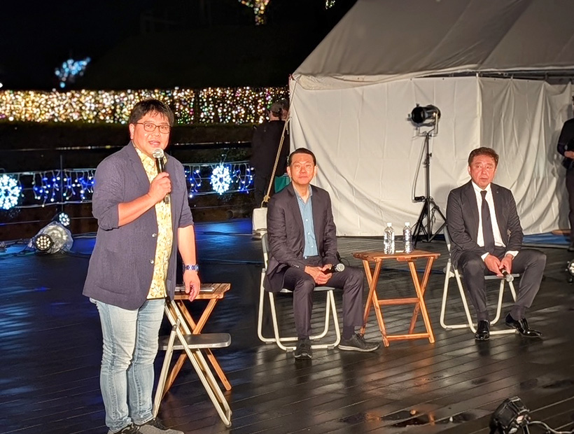 またむつ市からは「世界初」という「夜景予報士」が山本知也市長とともに登壇。