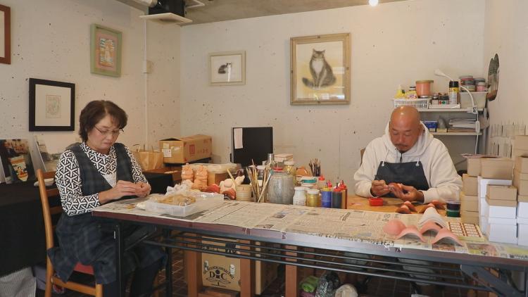3代目の佐藤由美子さんと人形師の好昭さんご夫婦は、二人とも実家を継いで、博多人形師の道に進むつもりでしたが、先代である由美子さんの叔父から「今宿人形を夫婦で継いでほしい」と頼まれたことをきっかけに、今宿人形の代表作である「猿面」を中心に制作を続けてきました。