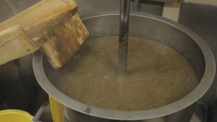 おきゅうとを作る上で最も大切なのは、直火でエゴ草を溶かしていくことだという。