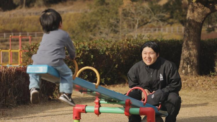 かつて自分の遊び場だった高田濃施山公園に、今では子供を連れて遊びにくるという筒井さん。