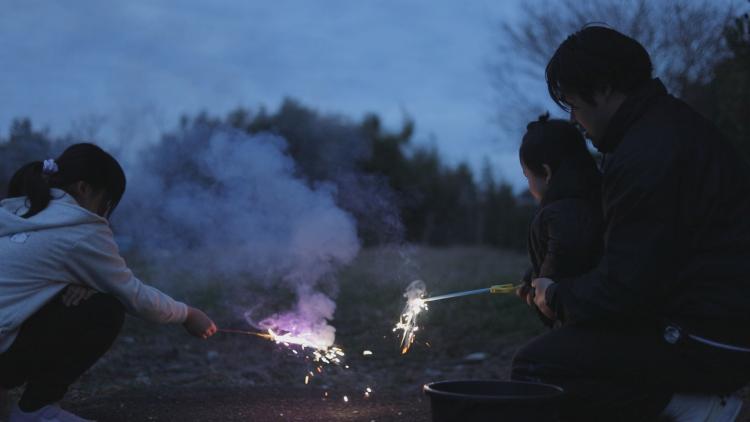 「夜の屋外」という子供にとって馴染みのない環境に現れる鮮やかな火花と音、そして煙の匂い。