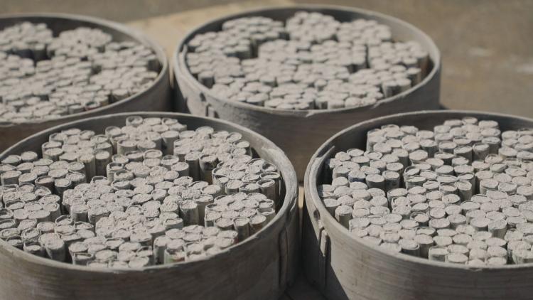 その上で、原料の配合を調整しながら、火花の勢いや色の濃淡のバランスを探り、火花が広がるイメージを想像して作っていく。