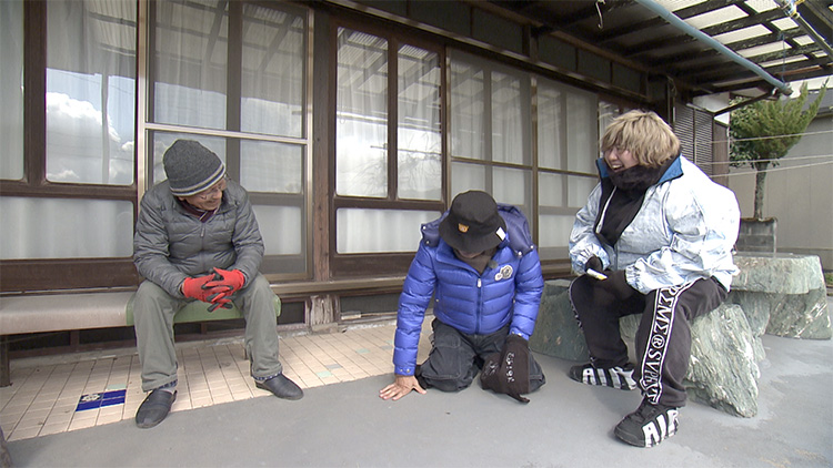 その後も寒さに震えながら集落をタビしていると、気になる1件のお宅が。訪ねてみると、「寒いので家の中にどうですか?」とのなんともうれしいお誘いが。お言葉に甘えてお邪魔すると、お宅の中にいたのはとってもユニークなおばあちゃん。話もとても上手ですが、前川さんのボケにかぶせてボケてくるおばあちゃんに、これまた大爆笑!