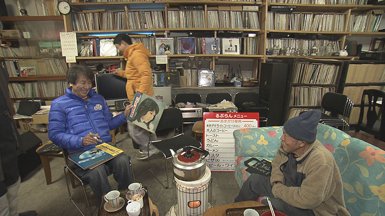 町の喫茶店では常連客の男性と楽しくおしゃべり、男性のなんとも優しい雰囲気に話していて笑顔になっちゃうご両人。