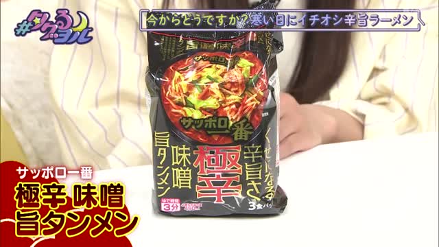 番組の後半では、深夜の夜食にぴったりのラーメンを紹介。サッポロ一番史上最も辛いという「極辛 味噌旨タンメン」を試食。