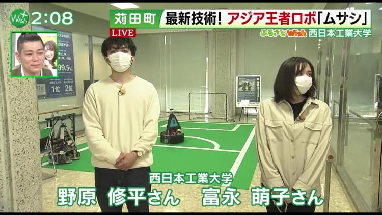 アビスパ福岡の大ファンだというスタジオのお天気キャスター・尾澤功さんは、「ルキアン選手の動きを入れて、ぜひ大量得点してほしいですね!」と興味津々。「ロボットと人間が同じフィールドで試合できるようになったらいいなと思っています」と富永さん。ただ、真の狙いはサッカーではありません。「使われている技術を社会に還元する、ということを目指しています」と、富永さんの構想は広がります。