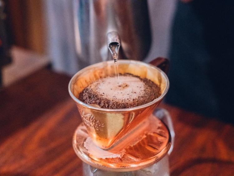 自社焙煎の「カゼマチブレンド」(450円)をハンドドリップで提供。