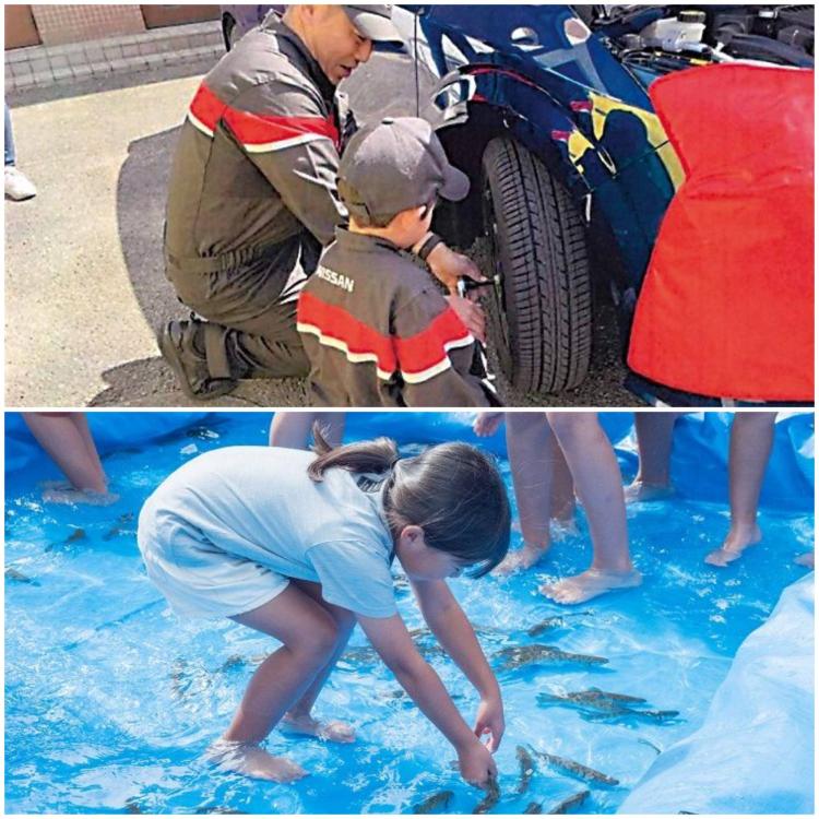 会場イベント目玉の一つが「こどもお仕事ランド」(先着順、無料)。警察官や消防士、自動車整備、農機体験など、さまざまな職業をプチ体験できます。また、星野川の源流で育ったヤマメをつかまえる「ヤマメのつかみ取り」(13:00~/小学生以下1回500円/200匹限定)は子どもたちに大人気の企画。小学校低学年向けの移動式遊具「ハコボックス」(写真1枚目)も広川まつりにやってきますよ!