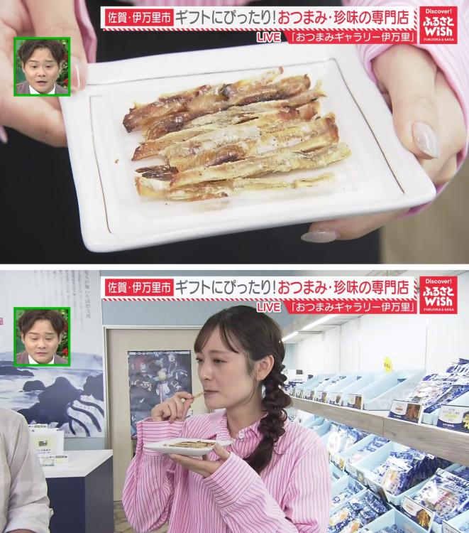 深川優月リポーターが訪れたのは、創業123年を誇る老舗おつまみ総合メーカー『小島食品工業株式会社』の直売所、『おつまみギャラリー伊万里』。