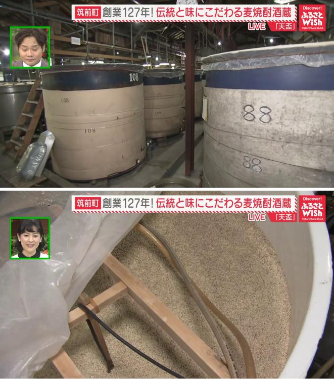 『天盃』では、福岡県産・佐賀県産の二条大麦と敷地内の井戸水のみを使用し、麹も麦で造るという、創業以来変わらない麦100%の焼酎づくりにこだわり続けています。
