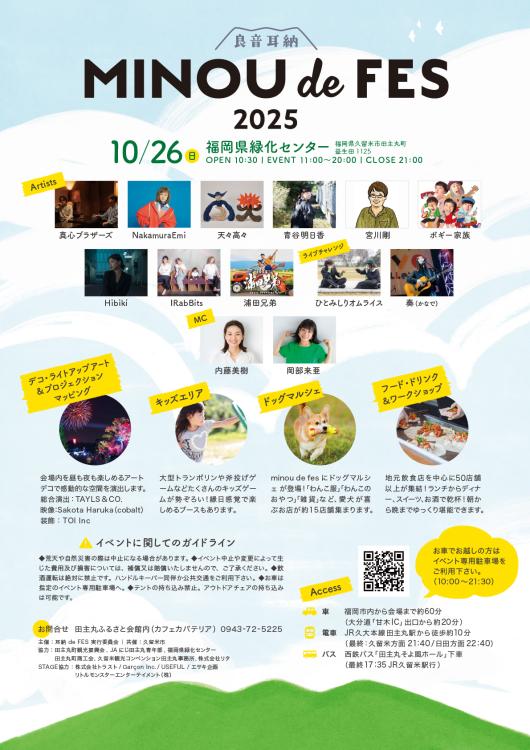 問い合わせ:耳納de FES実行委員会事務局(E-mail:info.minou.df@gmail.com)
