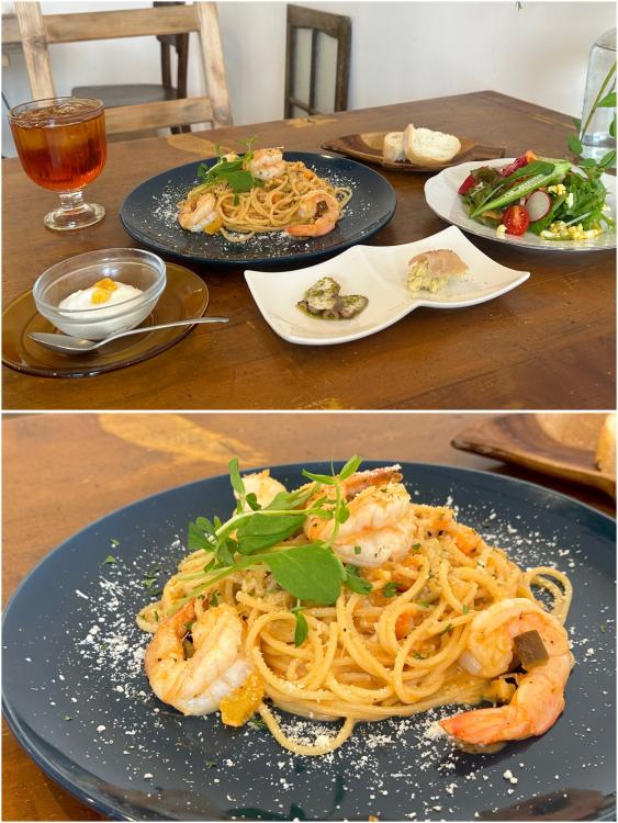 パスタには大ぶりの海老がごろっと入っており、ぷりぷりの食感がたまりません。