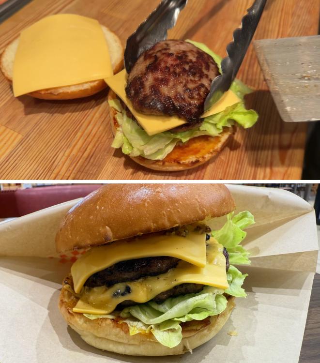 黒毛和牛のパティ2枚と、チェダーチーズ2枚を贅沢にサンド!