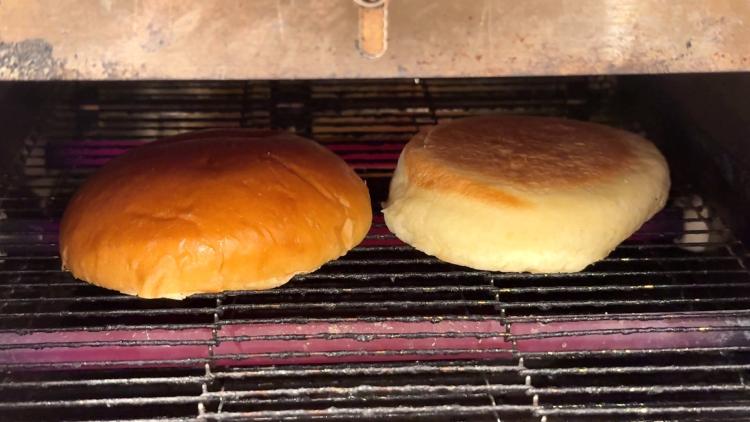 バンズは、福岡市内にある『タケシタベーカリー』の特注品。