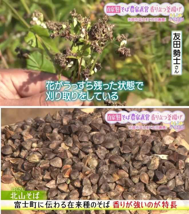 いわぶ見梨リポーターが向かったのは、そばの実の収穫作業真っ最中の「友田農園」(佐賀市富士町)。