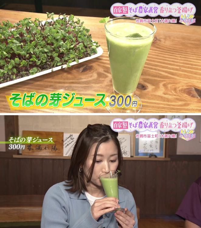 もう一つのおすすめが、農園直営ならではの「そばの芽ジュース」(300円)。 フレッシュなそばの芽とハチミツ、豆乳をブレンドした一杯です。キウイを思わせるような、フルーティーな味わいだそうです。