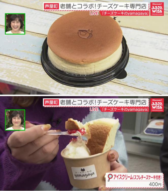 そのシュフレをテイクアウトでいただける「アイスクリーム(スフレチーズケーキ付き)」(400円)が人気。「ふわっ、しゅわっとしておいしい!」と、その優しい甘さと食感に大川リポーターも感動です。