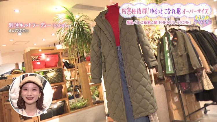 池松美湖リポーターが試着してみると、オーバーサイズなのに着膨れせず、キレイなシルエットに! NANGAは寝袋なども扱うブランドなだけあって、寝袋に包まれているような抜群の保温性が魅力だそうです。