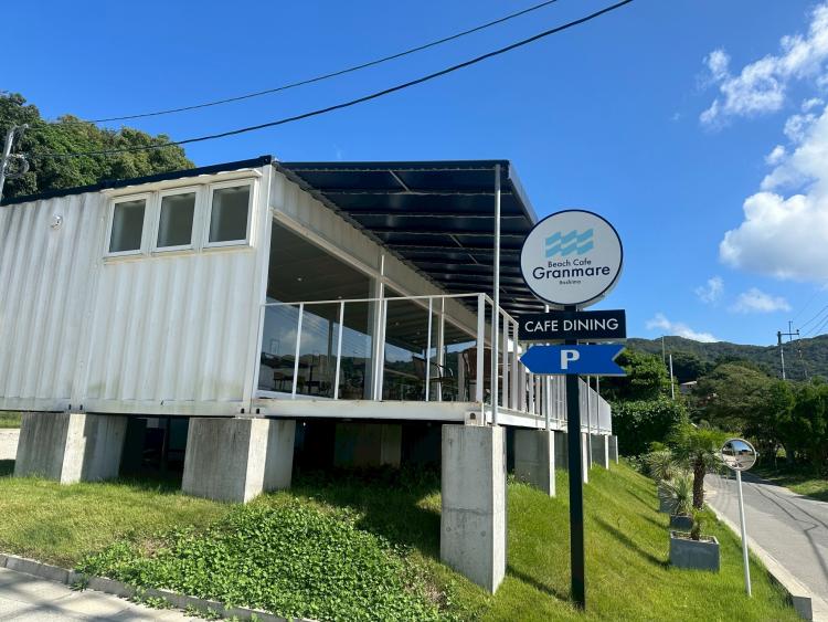 糸島の穏やかな海沿いに佇む『Beach Cafe Granmare(ビーチカフェ グランマーレ)』。