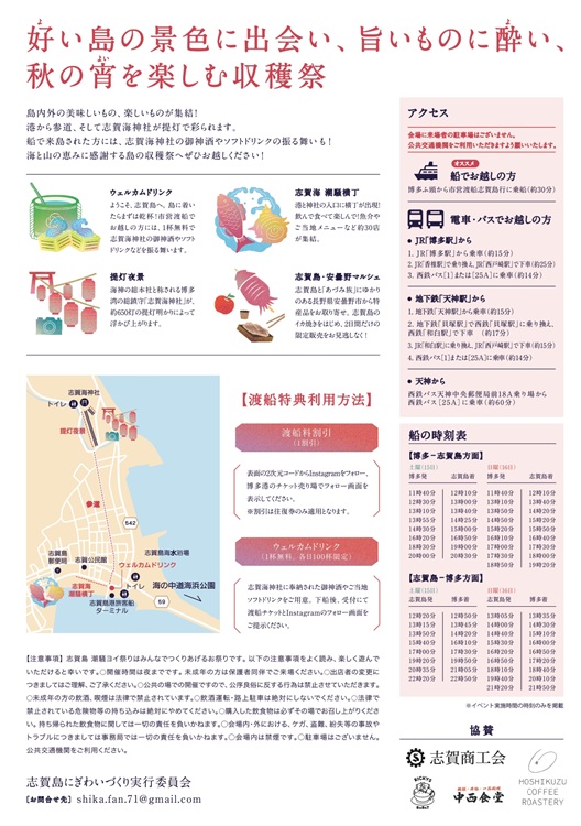 問い合わせ: 志賀島にぎわいづくり実行委員会(E-mail/shika.fan.71@gmail.com または公式InstagramのDM)
