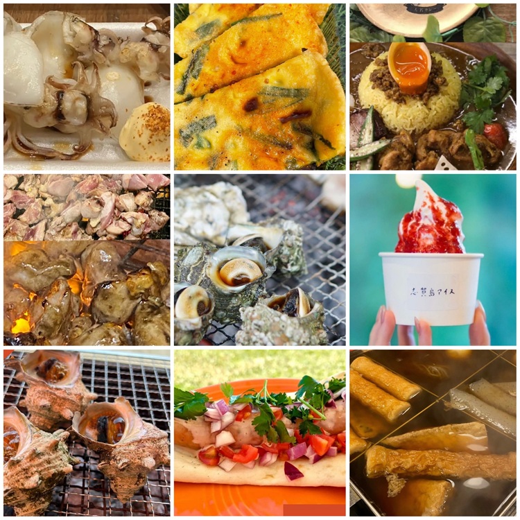 会場となる志賀島渡船場西側広場には、島内外から約25店が集結した「潮騒横丁」が出現!志賀島産のイカ焼きや海鮮、ご当地メニューなど、島グルメの魅力がぎゅっと詰まった横丁で、あれもこれもと目移りしてしまいそう。夜風にあたりながらお酒と一緒にじっくり味わうのも乙です。