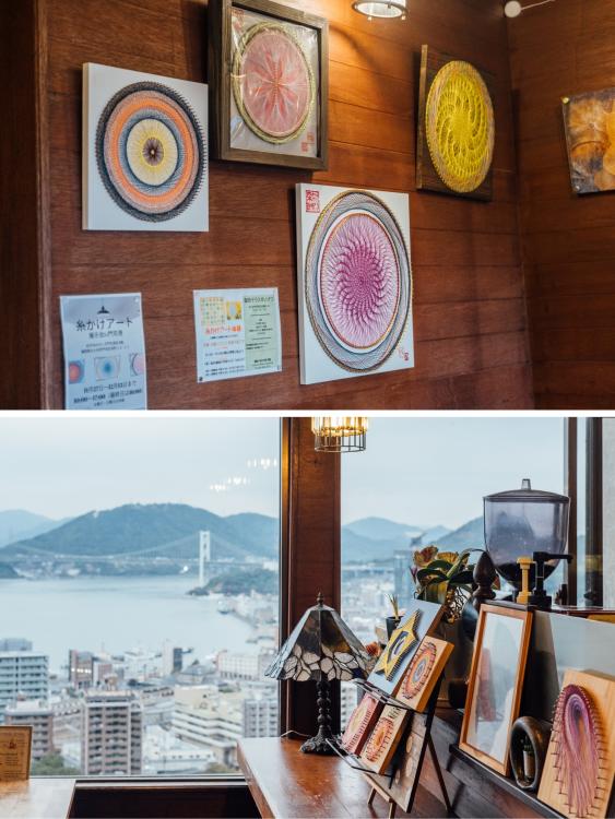 この想いは、実際に店とアート活動の間で相乗効果を生んでいる。福岡や山口、横浜、東京での展示会で河本さんのアートに触れた人が「門司港のカフェオーナー」と知って店を訪れる。逆に、店を訪れた客が糸かけアート作品を見て「これ何?」となり、そのまま教室の生徒になるケースも少なくない。