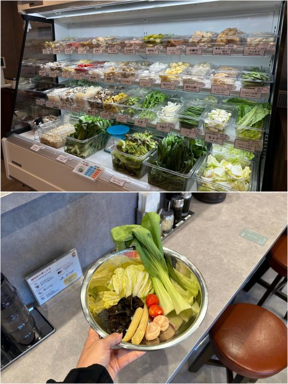 ショーケースには野菜・きのこ・練り物がずらりと並び、さらに別途、海鮮・肉メニューも充実!