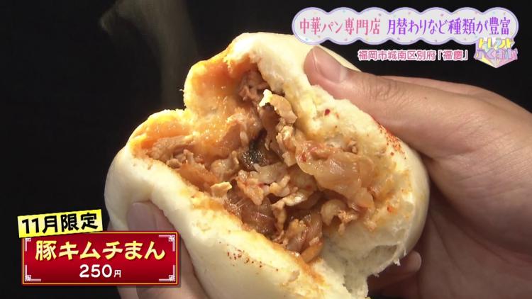 「しっかりキムチの辛みが感じられるし、大きめの豚肉が最高!」と、原健太郎リポーターもコメント。甘めの生地で包まれているので、辛みとのバランスも絶妙だそうです。今しか味わえない「豚キムチまん」。気になる人は、ぜひ『福慶』へ。