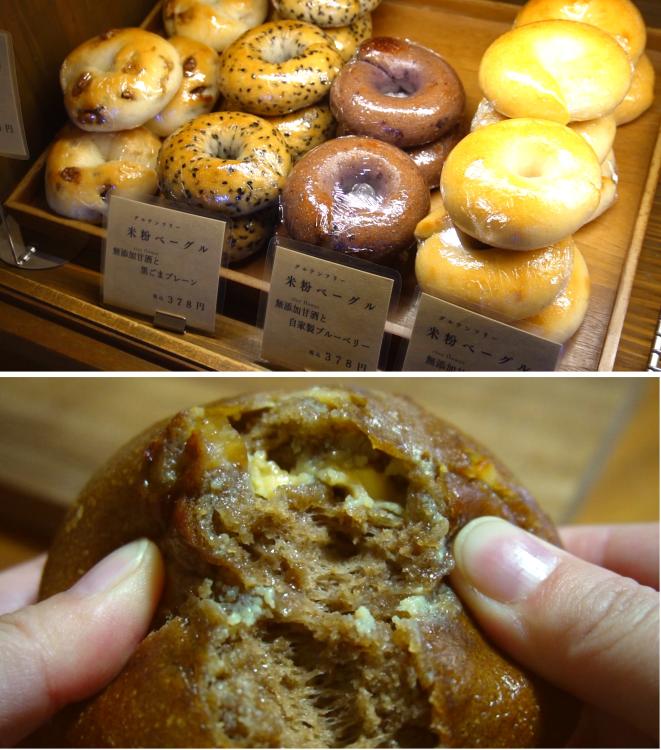 米粉100%のグルテンフリーベーグルが約20種類並びます。