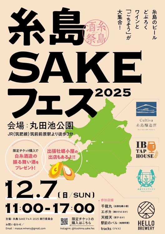 12月7日(日)に、JR筑肥線 筑前前原駅(福岡県糸島市)から徒歩3分の「丸田池公園」で、『糸島SAKEフェス2025』が開催されます。