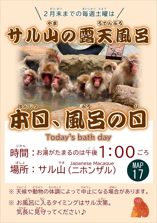 【1・2月の毎週土曜】湯気に包まれてウッキウキ~♪『サル山の露天風呂』福岡市動物園に登場中!(福岡市中央区)【イベント】