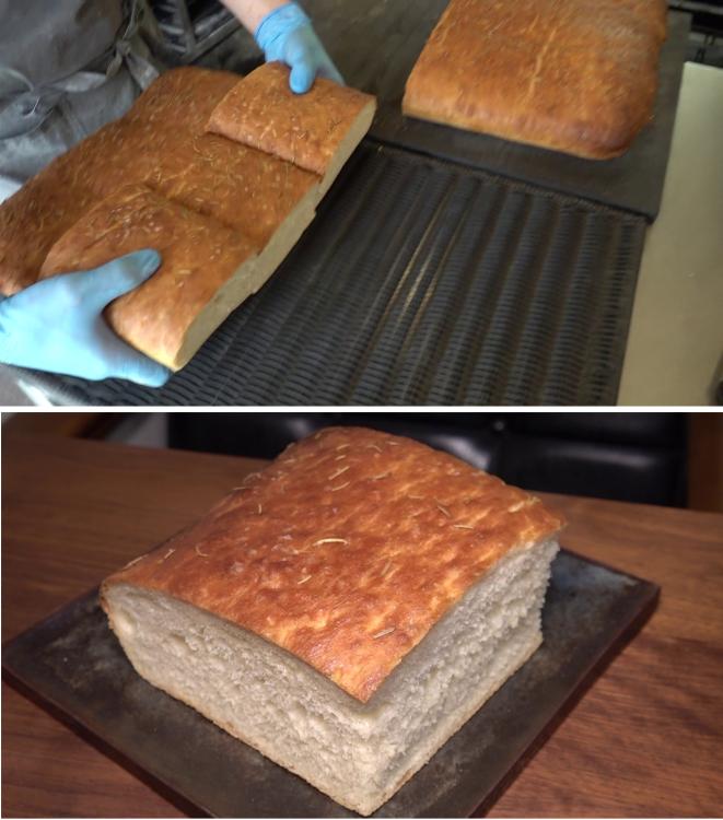 オリーブオイルを贅沢に配合した、14cm四方の大きなフォカッチャ。