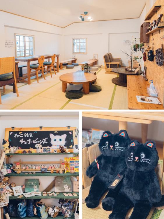 向かいには駄菓子コーナー、そして2階の一角には『ねこ雑貨チェリービーンズ』。手作り品からセレクト品まで、猫モチーフの雑貨がぎっしり。商品の約9割が猫グッズというから、猫好きにはたまりません。