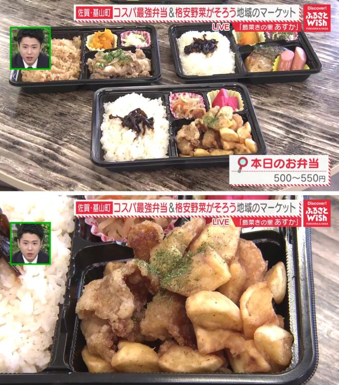 『あすか』で野菜と並んで人気なのが、ボリューム満点の「本日のお弁当」(500~550円)です。冷めてもおいしい地元ブランド米を使い、おかずには基山町の小中学校で20年以上愛されている給食メニュー「鶏肉のレモン煮」が入ることも。瀧リポーターも「お米がもっちもち!レモン煮も柔らかくて爽やか」と、コメント。地元に愛され続けるその味を絶賛しました。