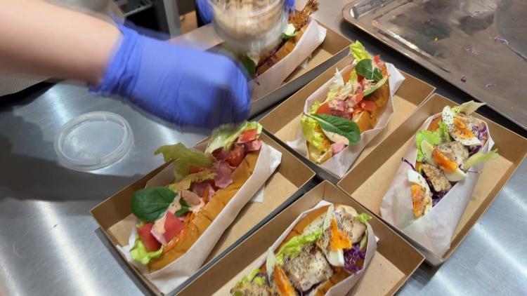 「通常のサンドイッチよりも、端から端までぎっしりと具を詰め込んでいるのが特徴です」とスタッフも話します。