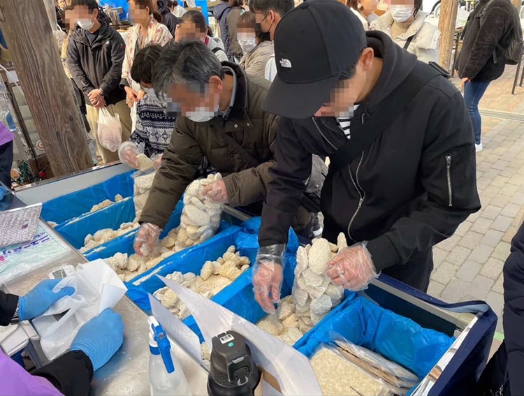 そして、恒例の「弥冨農園」による糸島ねぎのつかみ取りは、「えっ、こんなにいいの?」とちょっと恐縮しちゃうほど、片手いっぱいに新鮮なネギをゲットできる大チャンス。1回200円で先着200人限定。朝9時30分から整理券が配布されます。他にも、明太子やヨーグルト、地酒の酒粕・みかんなどの詰め放題など、とにかく活気あふれる催しが満載!買い物袋がパンパンになること間違いなしです。
